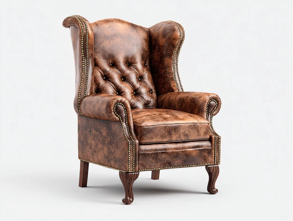 Eleganter Ledersessel für Wohn- oder Leseecke, klassischer Flügelsessel mit hoher Rückenlehne für optimalen Sitzkomfort und stilvolles Ambiente.