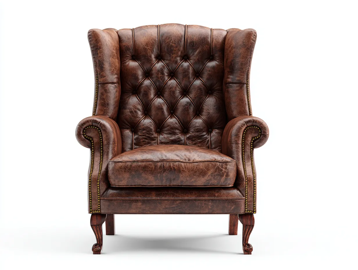 Hochwertiger Ledersessel für Wohnzimmer oder Leseecke, klassischer Flügelsessel mit hoher Rückenlehne für komfortables Sitzen und stilvolles Ambiente.