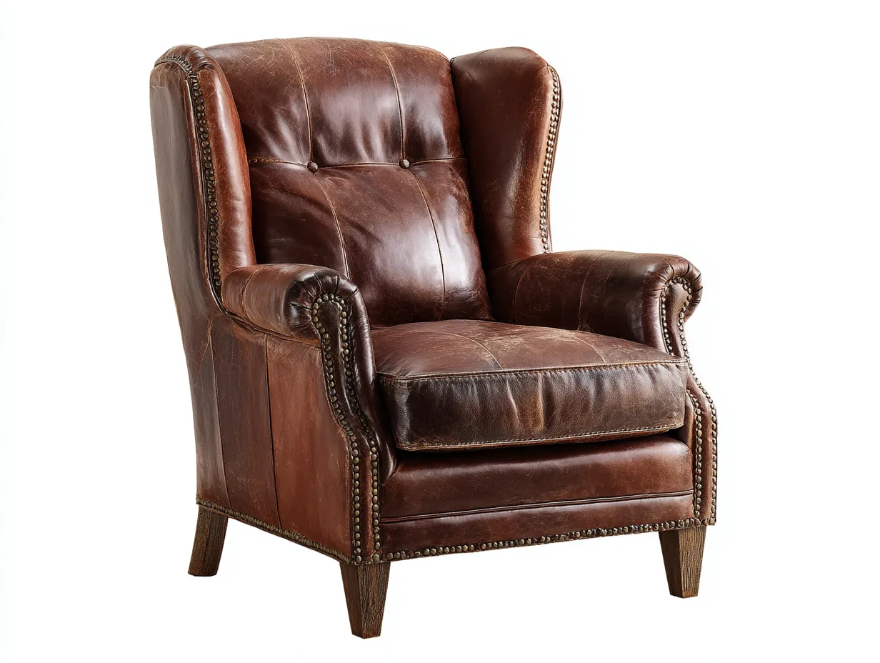 Hochwertiger Ledersessel für Wohnzimmer oder Leseecke, klassischer Flügelsessel mit hoher Rückenlehne für komfortables Sitzen und stilvolles Ambiente.