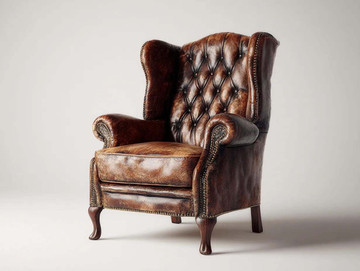 Hochwertiger Ledersessel für Wohnzimmer oder Leseecke, klassischer Flügelsessel mit hoher Rückenlehne für komfortables Sitzen und stilvolles Ambiente.
